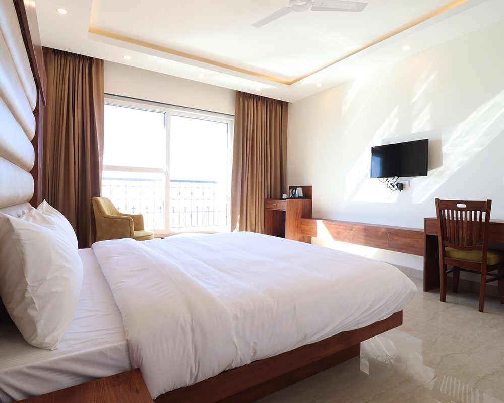 All rooms are elegantly furnished and specially designed for your maximum comfort, convenience and infinity view of Valley in Super Deluxe Rooms and the back hill in the Deluxe Rooms.